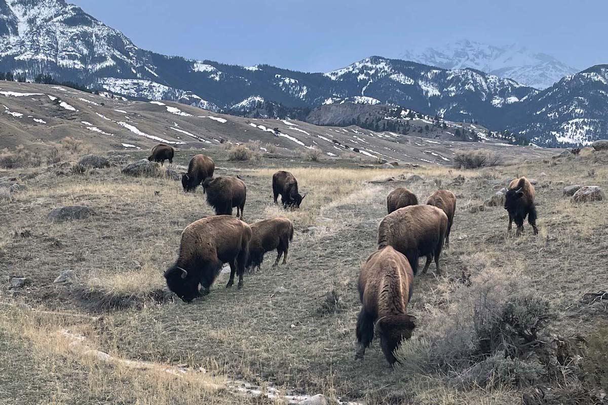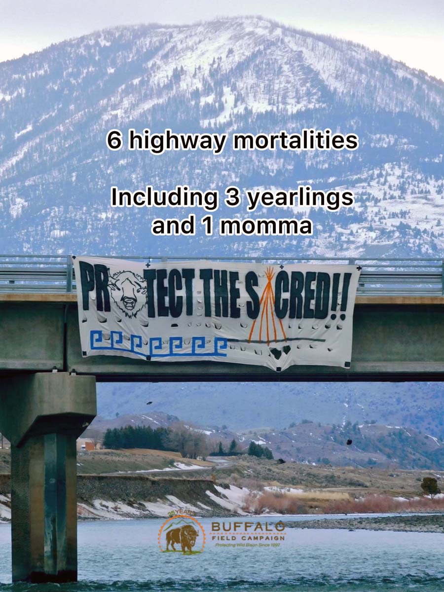 Our last wild bison bed down just outside Yellowstone's north gate, The Arch. As soon as Buffalo leave the park, they are trapped and sent to slaughter or quarantine by Yellowstone NPS.