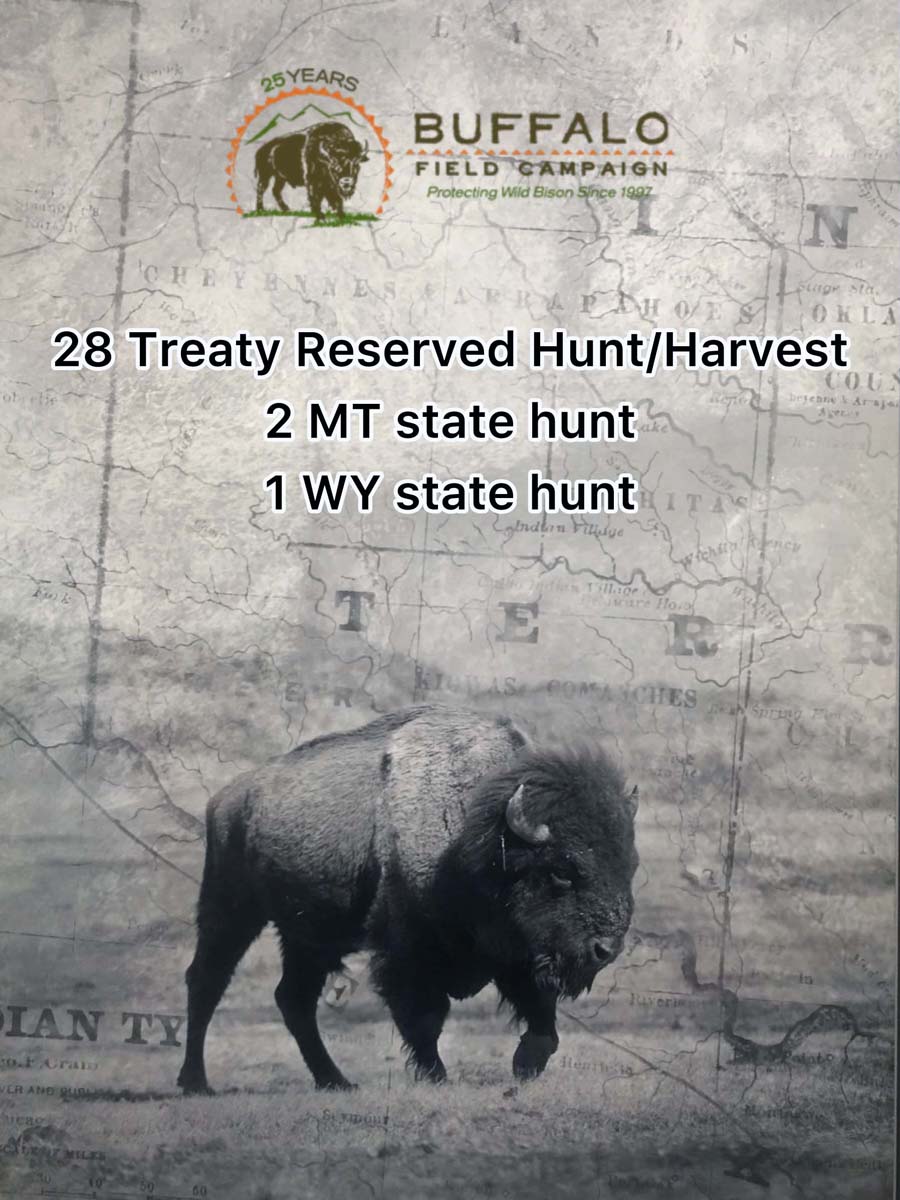 Our last wild bison bed down just outside Yellowstone's north gate, The Arch. As soon as Buffalo leave the park, they are trapped and sent to slaughter or quarantine by Yellowstone NPS.